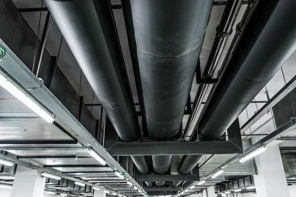 Toda a rede de águas pluviais do edifício, da cobertura até a rua, incluindo toda a parte externa do edifício.